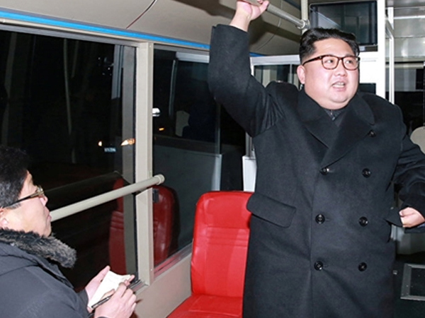 Nhà lãnh đạo Triều Tiên Kim Jong-un và vợ, Ri Sol-ju, đi thử một loại xe buýt điện mới ở Bình Nhưỡng.