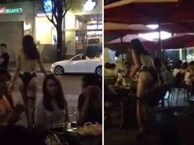 Hình ảnh một cô gái trẻ đẹp với dáng dấp của một người mẫu mặc bikini hở hang đi lại giữa phố, vào các quán ăn lề đường phát tờ rơi khiến cư dân mạng lại một lần nữa dậy sóng.
