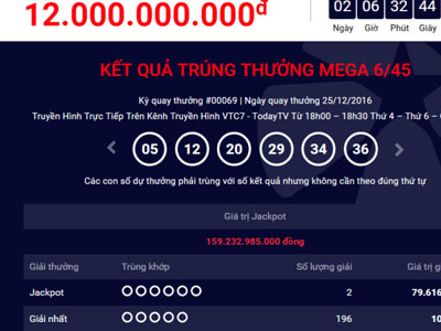 Theo đại diện Công ty xổ số điện toán Việt Nam (Vietlott), chủ nhân của 2 vé trúng độc đắc gần 160 tỷ đồng trong kỳ quay số 69 ngày 25/12 đã liên hệ nhận thưởng.