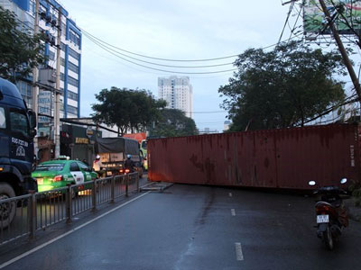 Vừa lách qua lô cốt dựng trên đường Nguyễn Hữu Cảnh (quận Bình Thạnh, TP HCM), người phụ nữ bị xe ben chạy phía sau cán qua và kéo lê 30 m, tử vong tại chỗ.