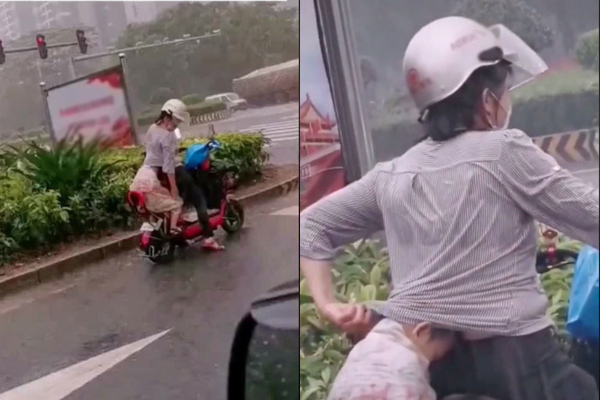 Đón con về giữa trời mưa, việc làm của người mẹ khiến ai cũng cảm động