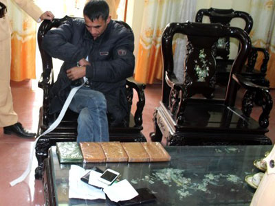 Tổ công tác CSGT tỉnh Bắc Giang dừng chiếc taxi Sông Hồng trên Quốc lộ 1A và phát hiện vị khách nam ngồi ghế sau quấn 5 bánh heroin (nặng 1,65 kg) quanh người.