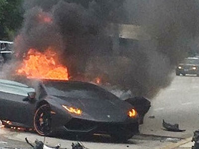 Lamborghini Huracan cháy ngùn ngụt sau tai nạn