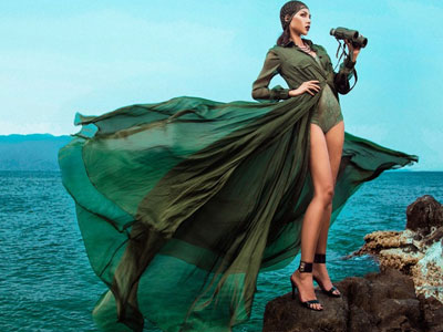 Các thiết kế có đường cắt dứt khoát, mãnh liệt mang đậm hơi hướng quân đội phù hợp với hình tượng sexy của chân dài da nâu.