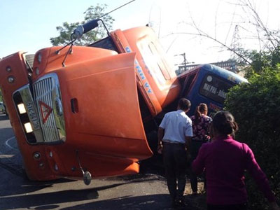 Trang 1Lạng Sơn: Container đâm xe buýt, ít nhất 1 người chết