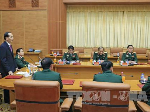 Chiều 6/9, Chủ tịch nước Trần Đại Quang có buổi làm việc với lãnh đạo Bộ Quốc phòng và đưa ra một số chỉ đạo hoạt động trong thời gian tới.