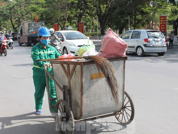 Thời tiết ở Hà Nội những ngày gần đây nắng nóng gay gắt, người dân lao động chật vật làm việc vì mưu sinh.