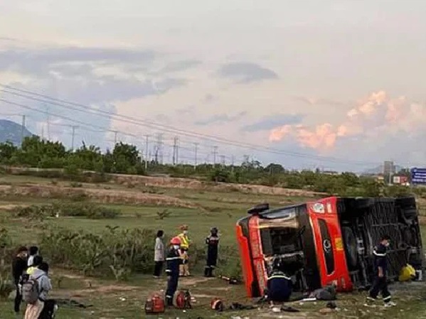 Đêm mùng 1 Tết, xe khách chở 46 người xuất phát từ TP.HCM tự lật trên quốc lộ 1 đoạn qua huyện Tuy An (Phú Yên) làm 17 người bị thương.