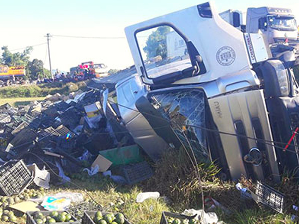 Người dân đội nắng gom hơn 20 tấn hoa quả giúp tài xế bị lật xe