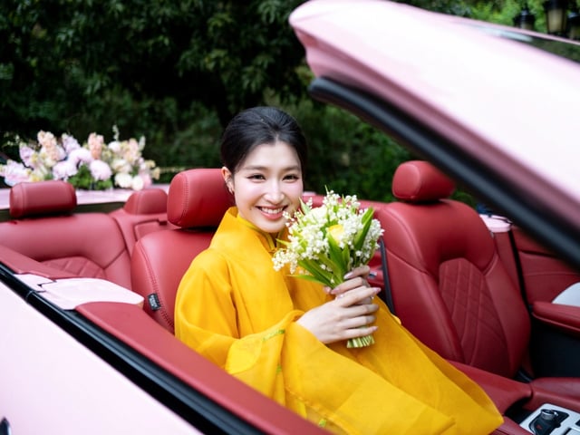 Á hậu Phương Nhi rạng rỡ trong lễ hằng thuận, thiếu gia Minh Hoàng lái xe mui trần rước nàng về dinh