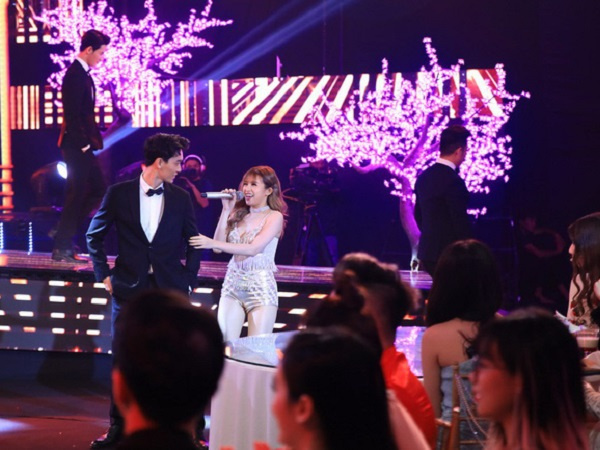 Phạm Quỳnh Anh và Bảo Anh đã cùng lên sân khấu cùng nhiều nghệ sĩ trong cùng một bài hát để chúc mừng đám cưới Lê Hiếu.