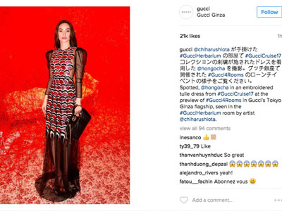 Vượt qua bao ngôi sao và các blogger nổi danh thế giới, Hồ Ngọc Hà là một trong số hiếm hoi những khách mời tham dự sự kiện buổi Triển lãm nghệ thuật Gucci 4 Rooms được vinh danh trên Instagram của hãng.