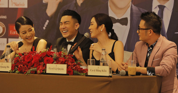 Trang 1Lệ Quyên, Bằng Kiều rủ nhau đi về vì bị Quang Hà "nói át" trong họp báo