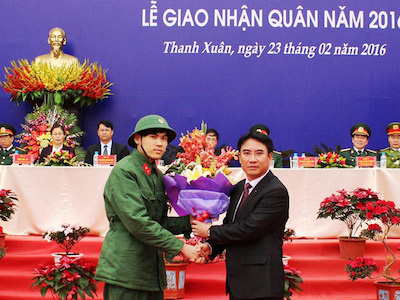 Học trường quốc tế và đang du học ở Anh nhưng Ngô Quang Huy đã quyết định xin dừng học để viết đơn xin nhập ngũ. Anh là 1 trong 16 công dân tự nguyện viết đơn xin nhập ngũ lần này tại quận Thanh Xuân, Hà Nội.