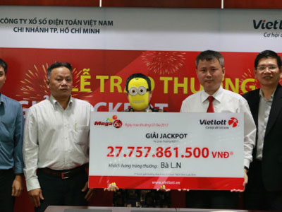 Sáng ngày 7/4, một nữ tiểu thương quận 5 đã nhận giải Jackpot Mega 6/45 kỳ quay số 110 của Vietlott với giá trị 27,7 tỷ đồng tại TP HCM.
