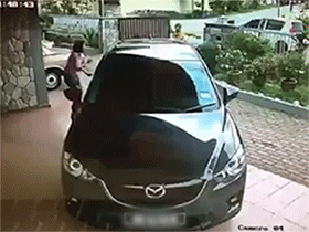 Một người đàn ông mặc chiếc áo thun màu vàng chạy nhanh ra khỏi xe, trên tay cầm vũ khí, lao vào nhà đe dọa hai người phụ nữ và cướp túi xách của họ rồi leo lên chiếc Myvi chạy trốn.