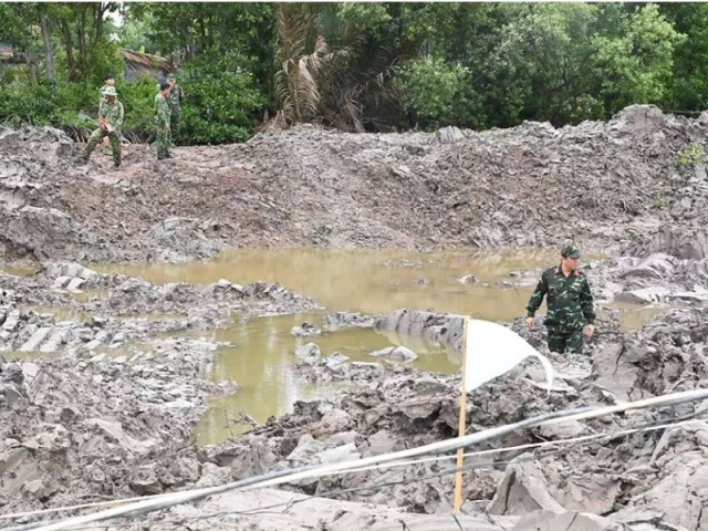 Lực lượng chức năng vừa phát hiện xác máy bay Mỹ cùng các vật thể khác dưới ao tôm của một người dân ở tỉnh Trà Vinh.