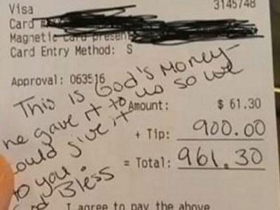 Nữ bồi bàn mang thai khóc vì được boa 900 USD