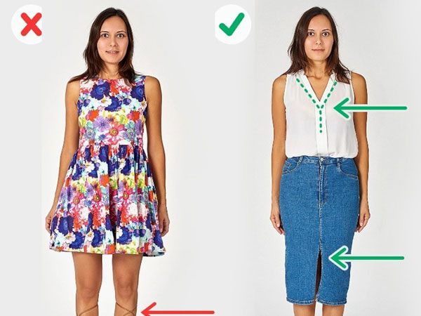 Tất cả những chi tiết cắt xẻ hay hoa văn theo chiều ngang đều không có tác dụng 'nịnh dáng'.