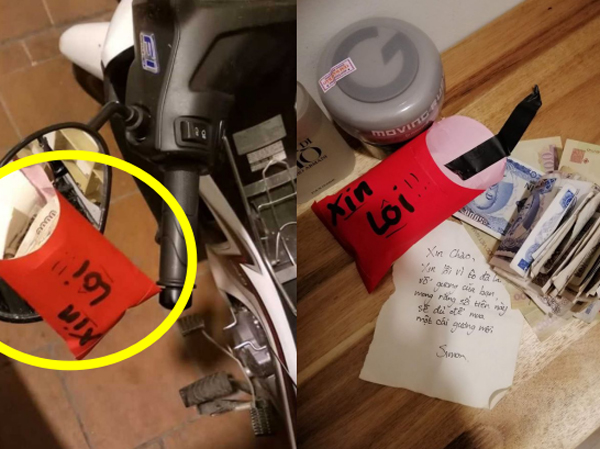 Chẳng may làm vỡ gương của một xe máy không biết chủ, anh chàng ngoại quốc để lại tiền đền bù nhưng mảnh giấy ghi chú mới khiến dân tình cười ngặt ngẽo