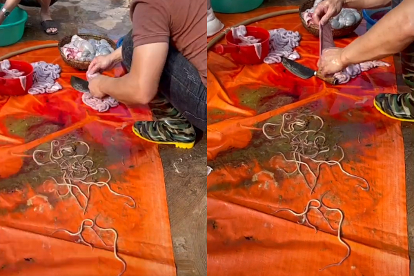 Video: Làm sạch lòng lợn bằng ủng khiến nhiều người phát hoảng