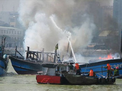18 thuyền viên cầu cứu trên tàu nước ngoài bốc cháy