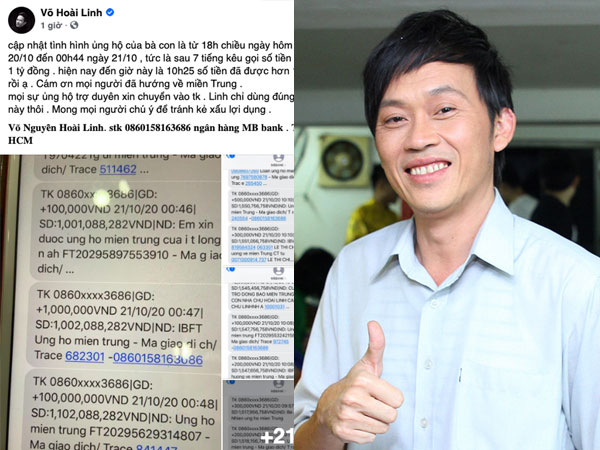 NS Hoài Linh thông báo đã nhận về hơn 1,5 tỷ đồng cứu trợ miền Trung từ các mạnh thường quân.