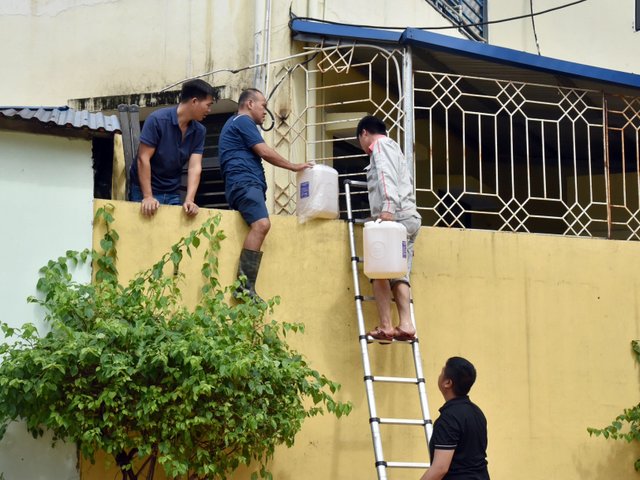 Thái Nguyên ngập chưa từng có: Bắc thang, trèo tường tiếp tế cơm cho trẻ mắc kẹt