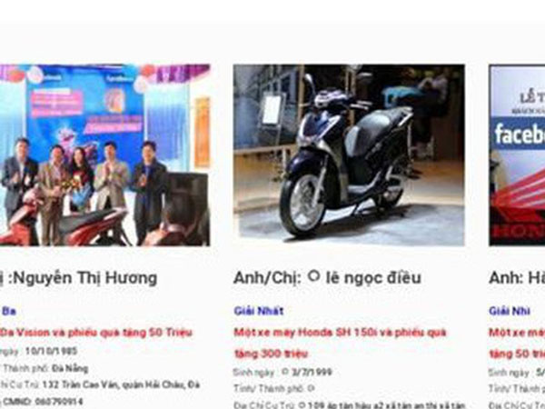 Trang 1'Trúng thưởng' SH 150i, người dùng không thể ngờ thông tin lừa đảo được dựng lên quá chi tiết
