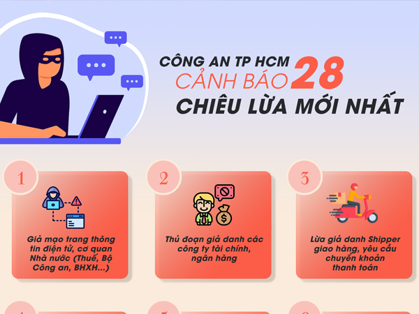 Trang 1Infographic: Công an TP HCM cảnh báo 28 chiêu lừa mới nhất người dân cần biết