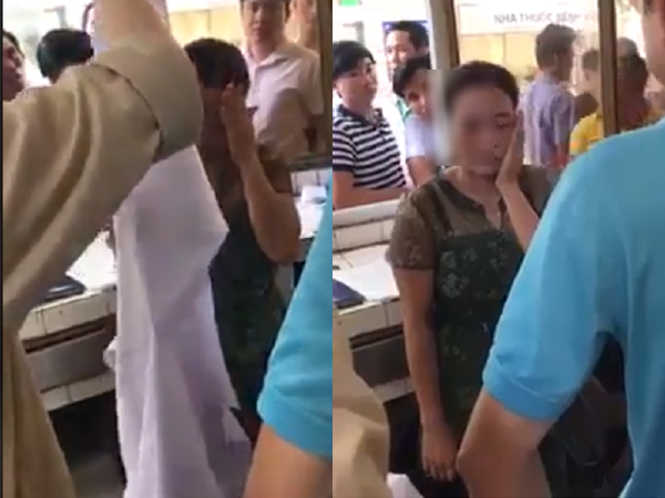 Một người phụ nữ vừa bị bảo vệ bệnh viện phụ sản Hà Nội bắt quả tang tại trận vì giả mạo bác sĩ, đeo tai nghe mặc áo blouse để lừa tiền trong bệnh viện.