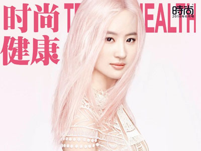 Lưu Diệc Phi khác lạ với tóc hồng trên tạp chí