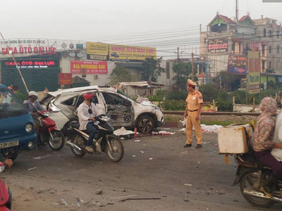 Chùm ảnh: Hiện trường kinh hoàng tàu hỏa tông ô tô khiến 5 người tử vong