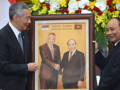 Thủ tướng Singapore có một ngày bận rộn tại Hà Nội với nhiều cuộc gặp gỡ với lãnh đạo cấp cao của Việt Nam. Ông được người đồng cấp Việt Nam tặng một bức tranh làm từ gạo độc đáo.