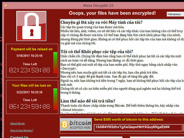 Ngày 12/5, một cuộc tấn công virus ransomware - phần mềm tống tiền - đã lan rộng trên các hệ thống máy tính của hàng trăm công ty tư nhân và các tổ chức công cộng trên toàn cầu.
