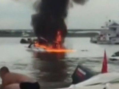 Trực thăng Trung Quốc lao xuống sông, cháy ngùn ngụt