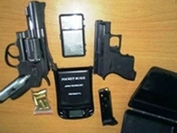 Sau khi bắt quả tang trùm ma túy, cảnh sát khám nhà, phát hiện 1 túi nilong chứa tinh thể màu trắng nghi ma túy tổng hợp dạng “đá”, 3 khẩu súng, 4 viên đạn.