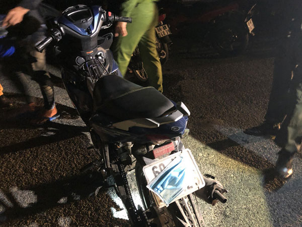 Lực lượng chức năng phát hiện một số xe máy đã được các đối tượng dùng khẩu trang y tế che biển kiểm soát nhằm tránh sự phát hiện của lực lượng công an.