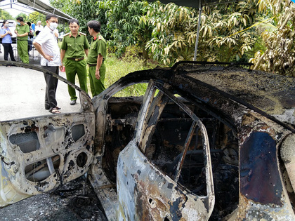 Phát hiện bộ xương người trên chiếc taxi cháy trơ khung