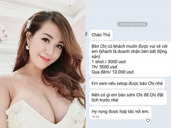 Hot girl Mai Thỏ công khai tin nhắn bị gạ đi khách 1 'shot' hơn 60 triệu đồng, qua đêm tận 10.000 USD