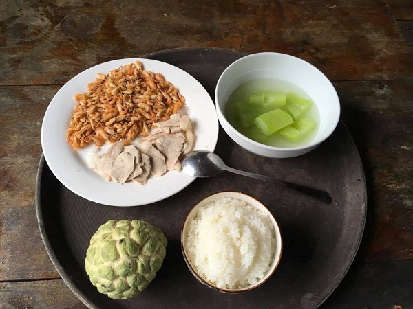 Vẫn là mâm cơm đạm bạc đang nổi mấy ngày gần đây nhưng khổ nỗi, phải ăn bữa cơm đơn giản thế này chẳng phải vì muốn đổi món mà vì cả hai vợ chồng "ngu" đã từ chối mang đồ từ quê lên.