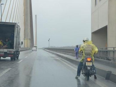 Clip: Xe khách "che chở" cho người đi xe máy vượt qua cầu Bãi Cháy