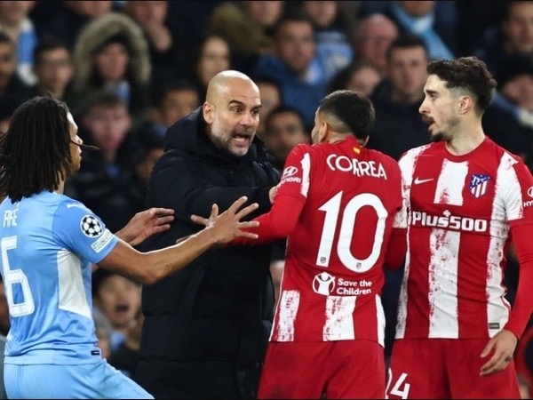 HLV Pep Guardiola đã không giữ được bình tĩnh khi Grealish bị cầu thủ Atletico Madrid sút bóng vào người.