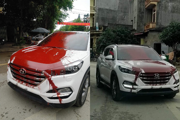 Chiếc ô tô bị vấy sơn đỏ và phản ứng trái chiều của dân mạng
