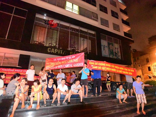 Đêm 14/7, hàng chục cư dân tại chung cư Capital Garden (ngõ 102 Trường Chinh, Đống Đa, Hà Nội) của chủ đầu tư Công ty TNHH Khách sạn Kinh Đô (thuộc Tập đoàn Kinh đô TCI) đã căng băng rôn phản đối chủ đầu tư.