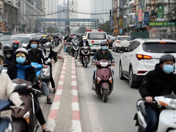 'Biển người' nối đuôi nhau đi ngược chiều ở ngã tư Khuất Duy Tiến