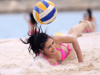 Thí sinh Hoa hậu hoàn vũ Việt Nam mặc bikini chơi bóng chuyền