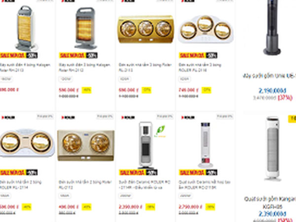 Nhu cầu mua các thiết bị sưởi ấm tăng cao nhưng các cửa hàng, siêu thị điện máy không những không tăng giá mà còn áp dụng chương trình ưu đãi, giảm giá mạnh cho nhiều mẫu quạt sưởi, máy sưởi, đèn sưởi,... tới 50%.