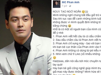 Sau chia sẻ về việc một số bộ phận cư dân mạng nghi ngờ sự thiếu minh bạch của số tiền từ thiện, MC Phan Anh tiếp tục lên tiếng khi có người cố tình ngụy tạo bằng chứng.