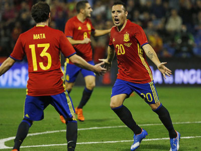 Tiếp đón đội tuyển Anh trên sân Jose Rico Perez, những chú bò tót Tây Ban Nha có màn thị uy sức mạnh bằng chiến thắng 2-0 với các pha lập công đẹp mắt của Mario Suarez và Cazorla.